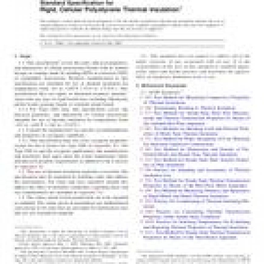 1.1 This specification covers the types, physical properties, and dimensions of cellular polystyrene boards with or without facings or coatings made by molding (EPS) or extrusion (XPS) of expandable polystyrene. Products manufactured to this specification are intended for use as thermal insulation for temperatures from -65 to +165F (-53.9 to +73.9C). This specification does not apply to laminated products manufactured with any type of rigid board facer including fiberboard, perlite board, gypsum board, or oriented strand board.