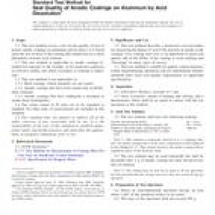 1.1 This test method covers a test for the quality of seal of porous anodic coatings on aluminum and its alloys. It is based upon the loss in mass of the coating after immersion in a warm phosphoric-chromic acid solution.