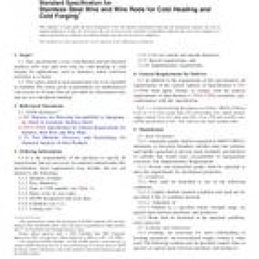 1.1 This specification covers cold-finished and hot-finished stainless steel wire and wire rods for cold heading or cold forging for applications, such as fasteners, where corrosion resistance is a factor.