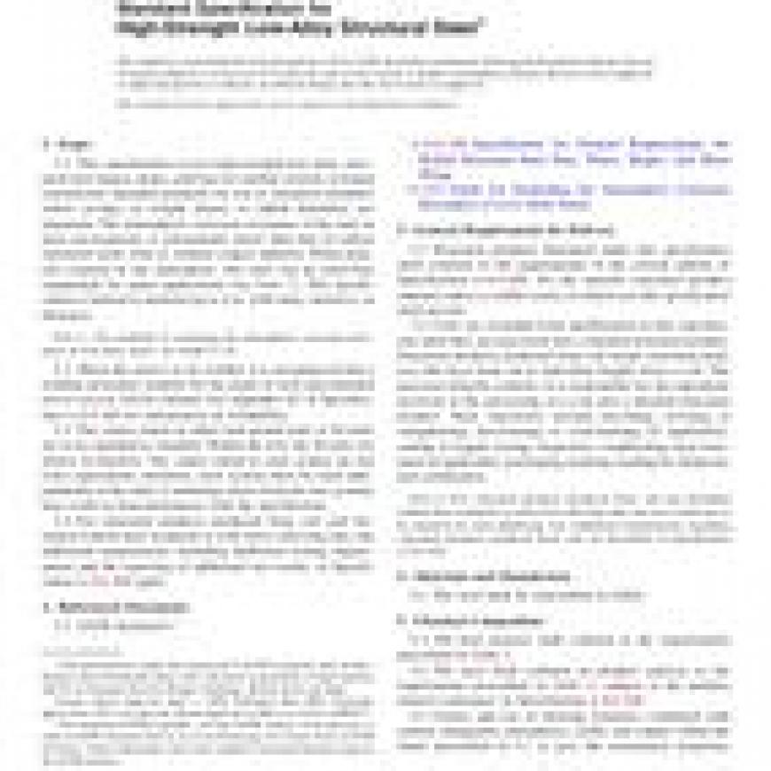 1.1 This specification covers high-strength low-alloy structural steel shapes, plates, and bars for welded, riveted, or bolted construction intended primarily for use as structural members where savings in weight [mass] or added durability are important. The atmospheric corrosion resistance of the steel in most environments is substantially better than that of carbon structural steels with or without copper addition. When properly exposed to the atmosphere, this steel can be used bare (unpainted) for many applications (see Note 1). This specification is limited to material up to 4 in. [100 mm], inclusive, in thickness.