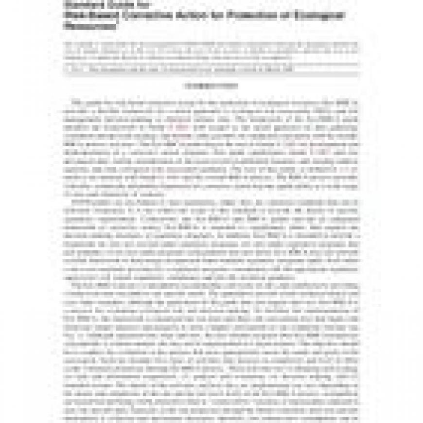 1.1 This is a guide to risk-based corrective action for the protection of ecological resources and supplements the RBCA process (Guide E 2081). The primary objective of the Eco-RBCA process is to provide a flexible framework for a tiered approach to ERA and risk management decision making at chemical release sites. To this end, available guidance documents from various federal and state agencies were reviewed and their common attributes incorporated into this guide, where possible. The Eco-RBCA process complements existing technical and regulatory ecological risk guidance (see 4.2). In particular, it is intended to be compatible with the USEPA programmatic guidelines for ERA (1) , guidance for the Superfund program (2), and other USEPA (3) risk assessment and corrective-action programs. Eco-RBCA might also be used in conjunction with corrective action strategies that include human health issues (for example, Guide E 2081).