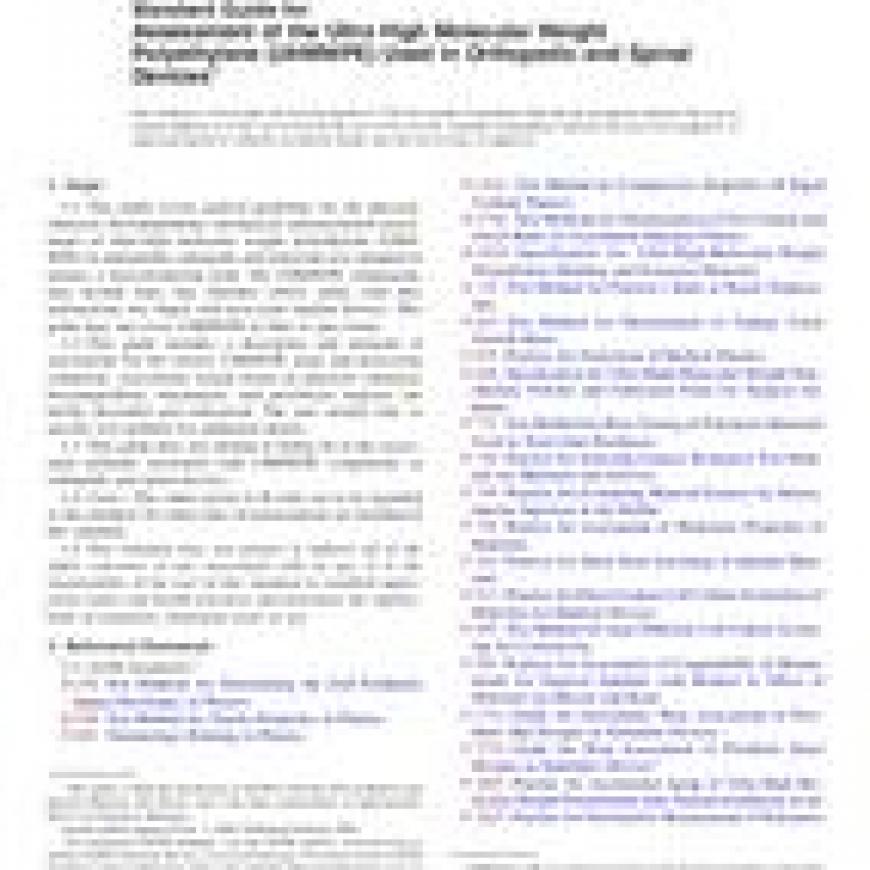 ASTM F2759-09 Standard Guide for Assessment of the Ultra High Molecular Weight Polyethylene (UHMWPE) Used in Orthopedic and Spinal Devices