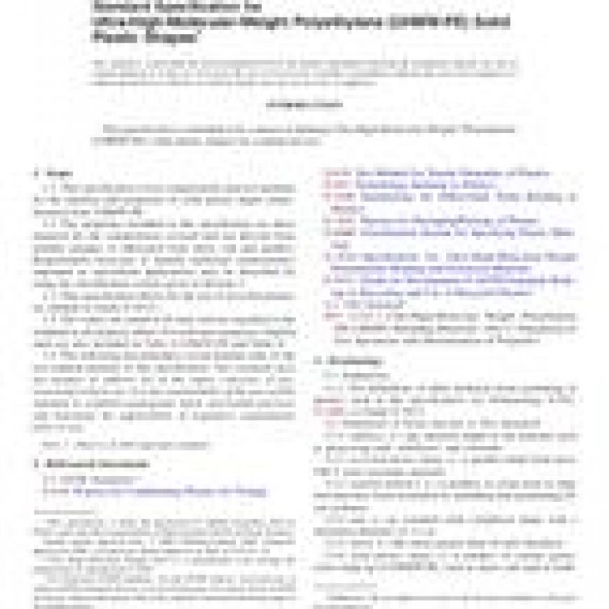 ASTM D6712-01(2009) Standard Specification for Ultra-High-Molecular-Weight Polyethylene (UHMW-PE) Solid Plastic Shapes
