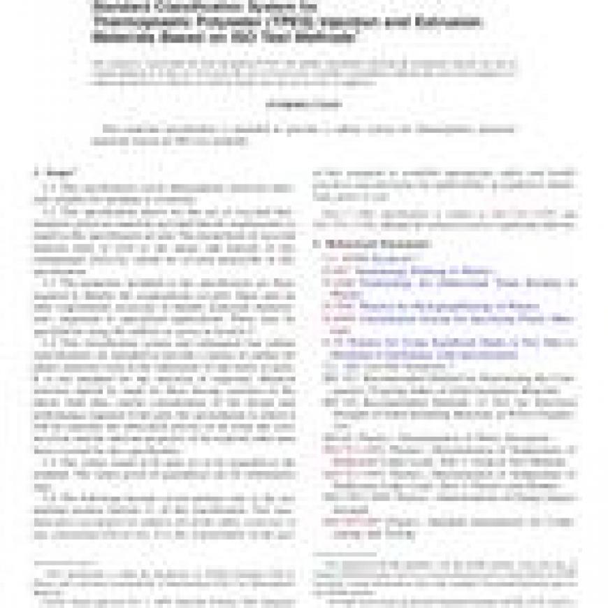 ASTM D5927-09 Standard Classification System for Thermoplastic Polyester (TPES) Injection and Extrusion Materials Based on ISO Test Methods