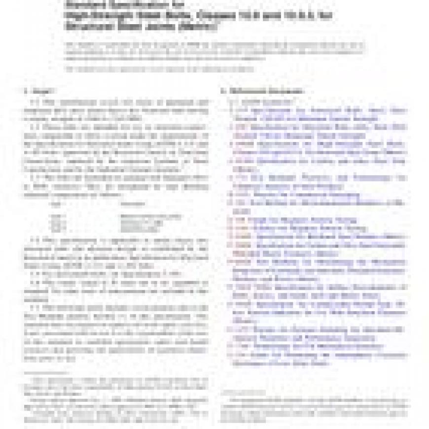 1.1 This specification covers two types of quenched and tempered alloy steel, metric heavy hex structural bolts having a tensile strength of 1040 to 1210 MPa.