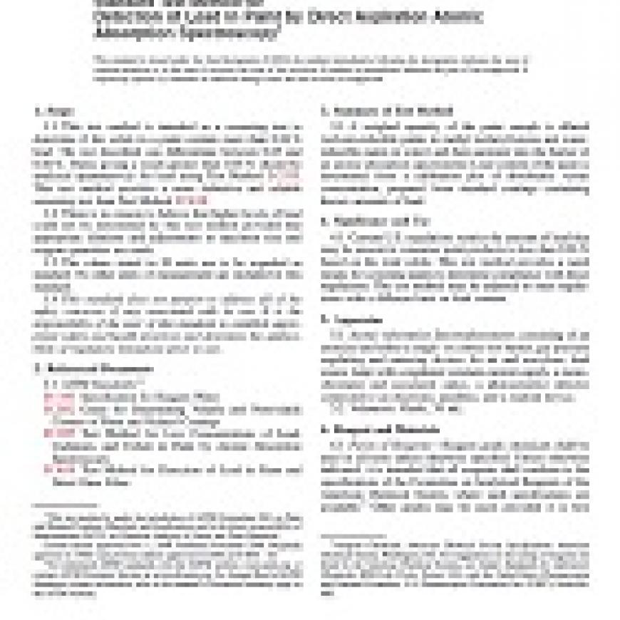 ASTM D4834-02(2008) Standard Test Method for Detection of Lead in Paint by Direct Aspiration Atomic Absorption Spectroscopy