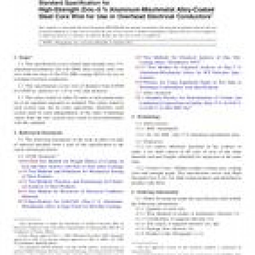 ASTM B803/B803M-08e1 Standard Specification for High-Strength Zinc-5% Aluminum-Mischmetal Alloy-Coated Steel Core Wire for Use in Overhead Electrical Conductors