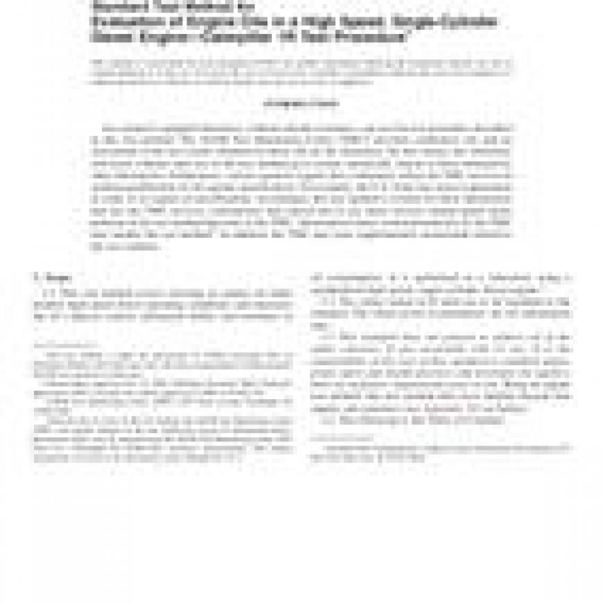 ASTM D6923-08 Standard Test Method for Evaluation of Engine Oils in a High Speed, Single-Cylinder Diesel Engine - ;Caterpillar 1R Test Procedure