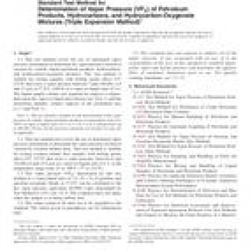 ASTM D6378-08 Standard Test Method for Determination of Vapor Pressure (VPX) of Petroleum Products, Hydrocarbons, and Hydrocarbon-Oxygenate Mixtures (Triple Expansion Method)