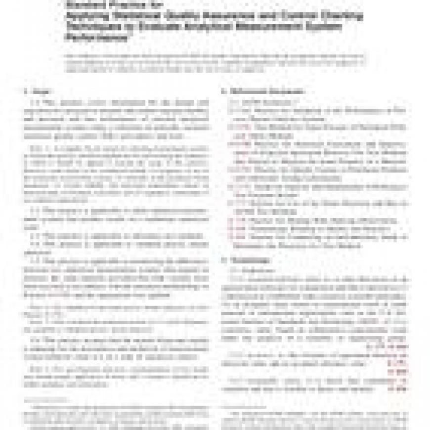 ASTM D6299-08 Standard Practice for Applying Statistical Quality Assurance and Control Charting Techniques to Evaluate Analytical Measurement System Performance