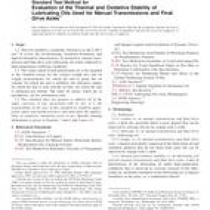 ASTM D5704-08 Standard Test Method for Evaluation of the Thermal and Oxidative Stability of Lubricating Oils Used for Manual Transmissions and Final Drive Axles