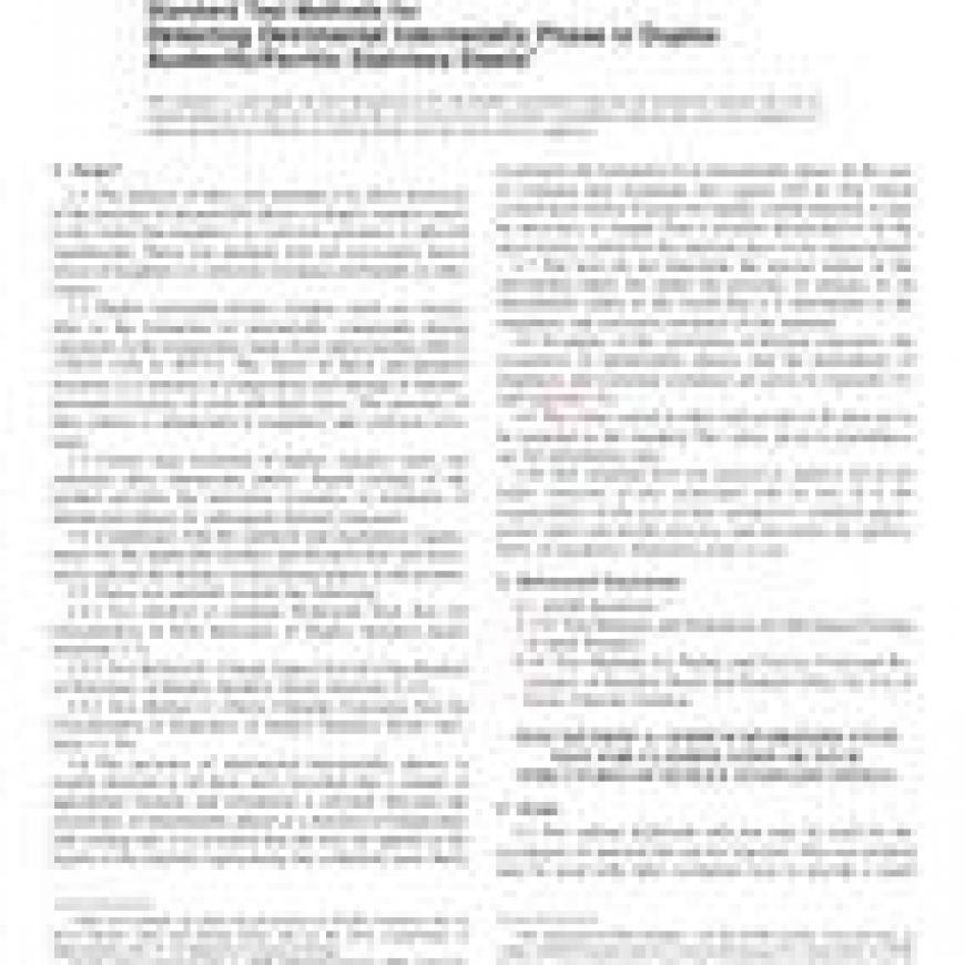 1.1 The purpose of these test methods is to allow detection of the presence of intermetallic phases in duplex stainless steels to the extent that toughness or corrosion resistance is affected significantly. These test methods will not necessarily detect losses of toughness or corrosion resistance attributable to other causes.