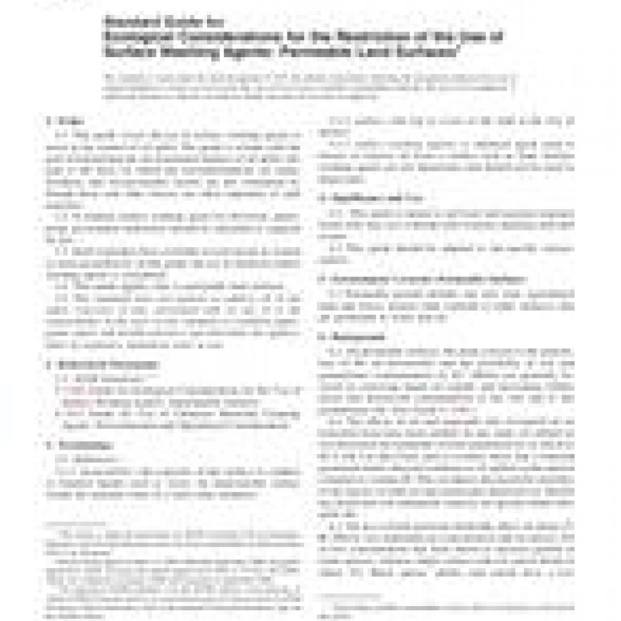 ASTM F1279-08 Standard Guide for Ecological Considerations for the Restriction of the Use of Surface Washing Agents: Permeable Land Surfaces