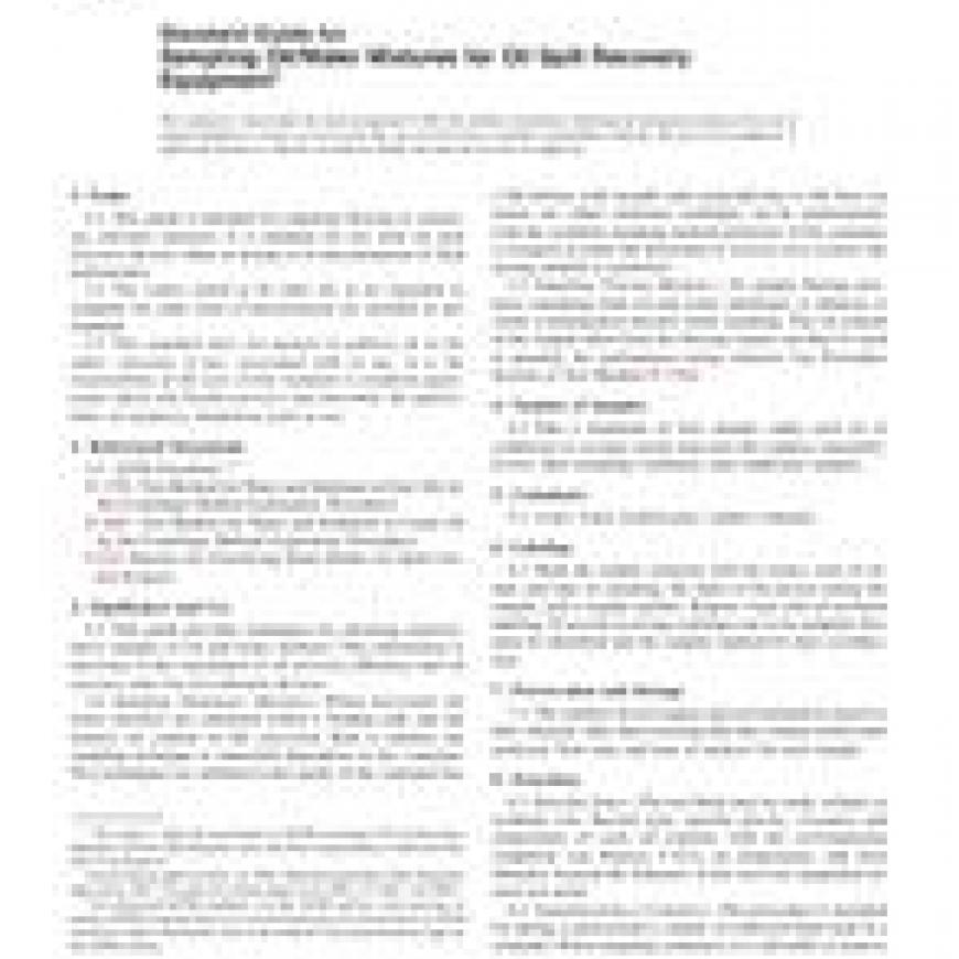 ASTM F1084-08 Standard Guide for Sampling Oil/Water Mixtures for Oil Spill Recovery Equipment