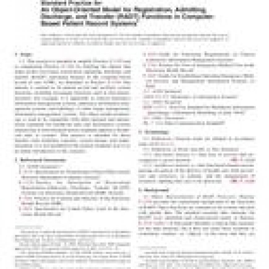 ASTM E1715-01(2008) Standard Practice for An Object-Oriented Model for Registration, Admitting, Discharge, and Transfer (RADT) Functions in Computer-Based Patient Record Systems
