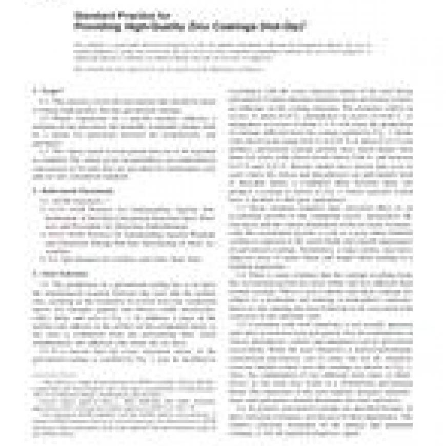 1.1 This practice covers the precautions that should be taken to obtain high-quality hot-dip galvanized coatings.