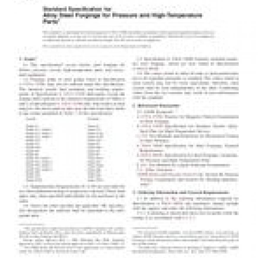 1.1 This specification covers ferritic steel forgings for boilers, pressure vessels, high-temperature parts, and associated equipment.