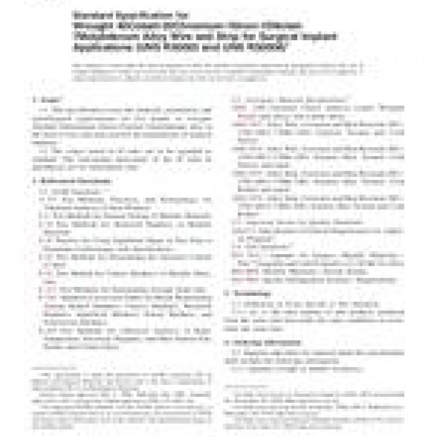 ASTM F1058-08 Standard Specification for Wrought 40Cobalt-20Chromium-16Iron-15Nickel-7Molybdenum Alloy Wire and Strip for Surgical Implant Applications (UNS R30003 and UNS R30008)
