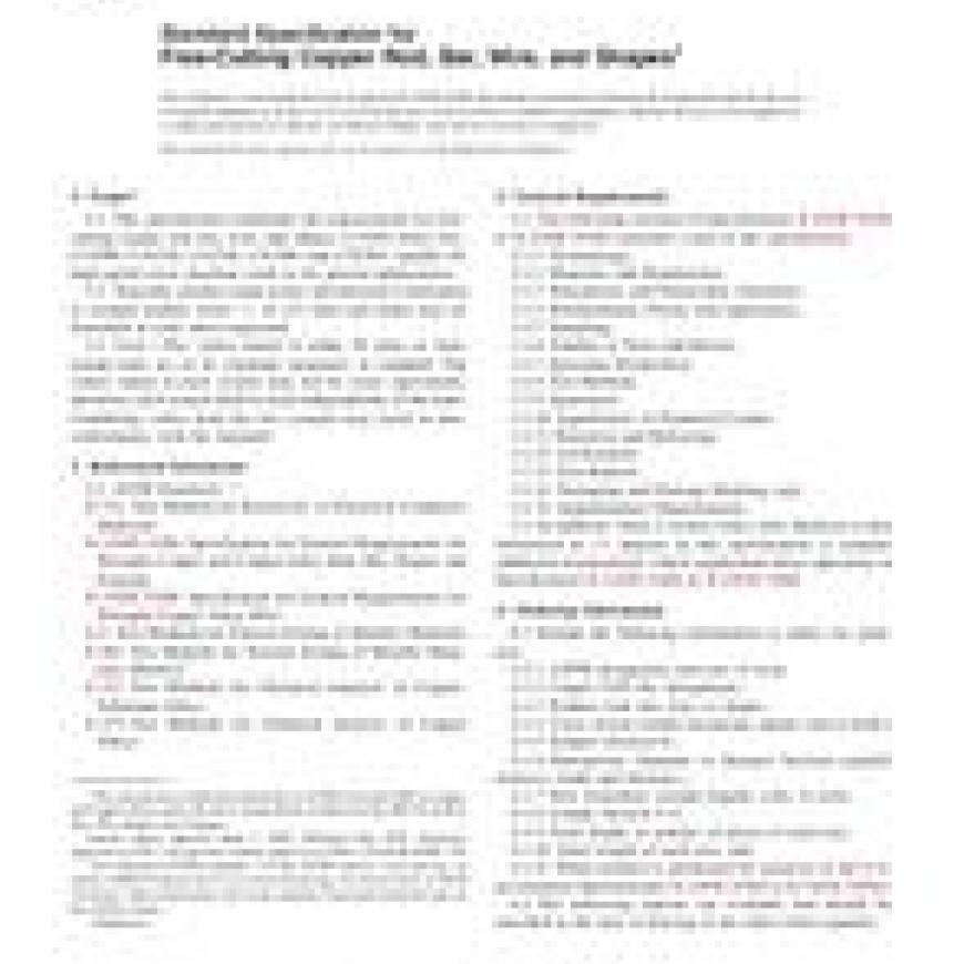 1.1 This specification establishes the requirements for free-cutting copper rod, bar, wire, and shapes of UNS Alloy Nos. C14500, C14510, C14520, C14700, and C18700, suitable for high-speed screw machine work or for general applications.