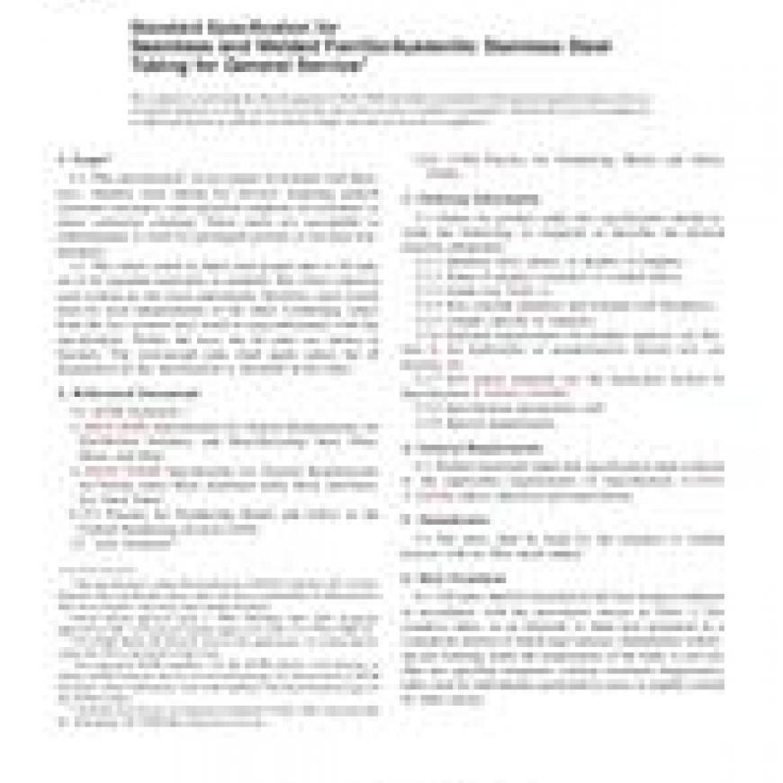 1.1 This specification covers grades of nominal wall thickness, stainless steel tubing for services requiring general corrosion resistance, with particular emphasis on resistance to stress corrosion cracking. These steels are susceptible to embrittlement if used for prolonged periods at elevated temperatures.