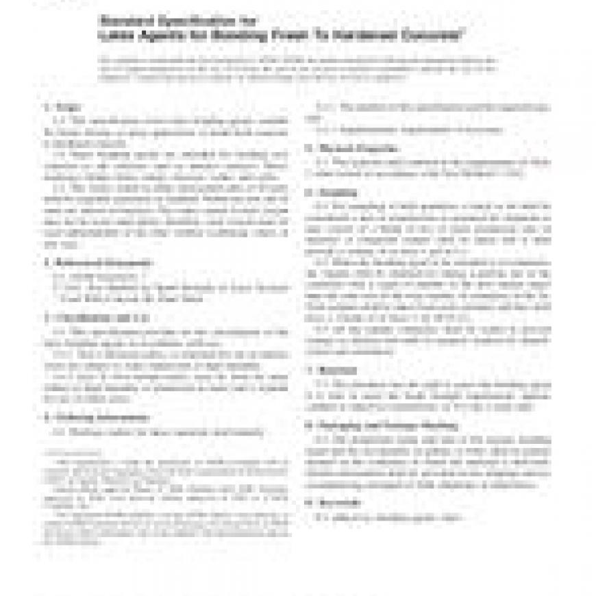 1.1 This specification covers latex bonding agents, suitable for brush, broom, or spray application, to bond fresh concrete to hardened concrete.