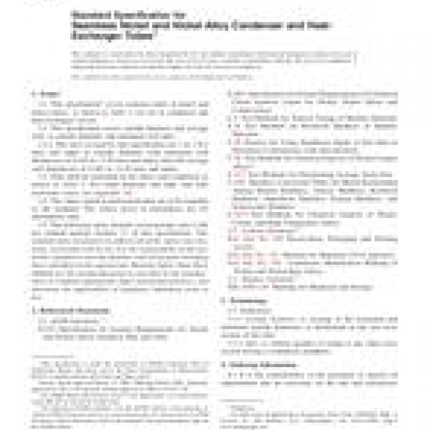 ASTM B163-08 Standard Specification for Seamless Nickel and Nickel Alloy Condenser and Heat-Exchanger Tubes