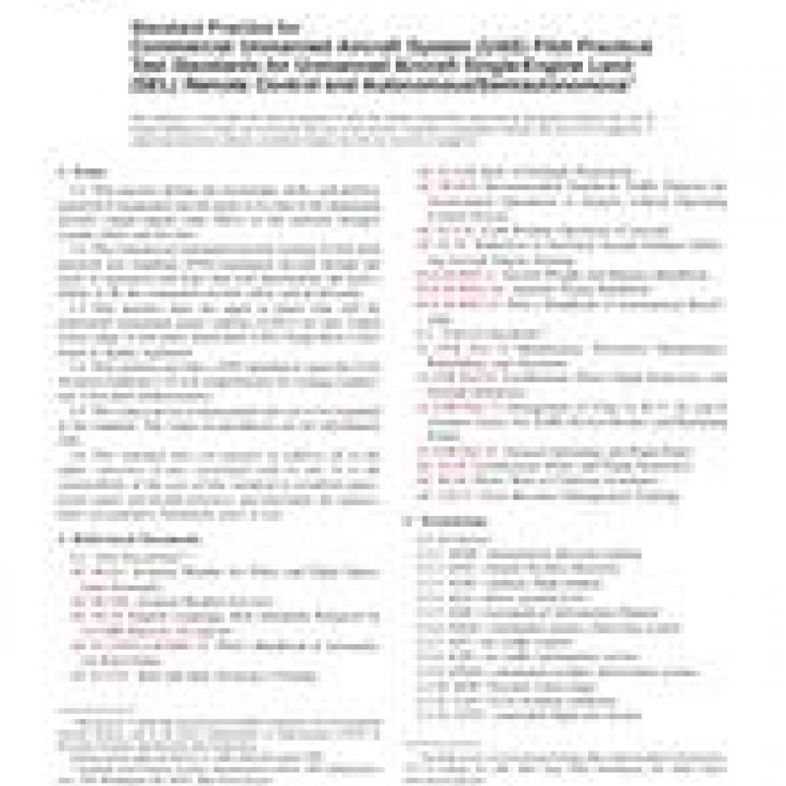 ASTM F2636-08 Standard Practice for Commercial Unmanned Aircraft System (UAS) Pilot Practical Test Standards for Unmanned Aircraft Single-Engine Land (SEL) Remote Control and Autonomous/Semiautonomous (Withdrawn 2014)