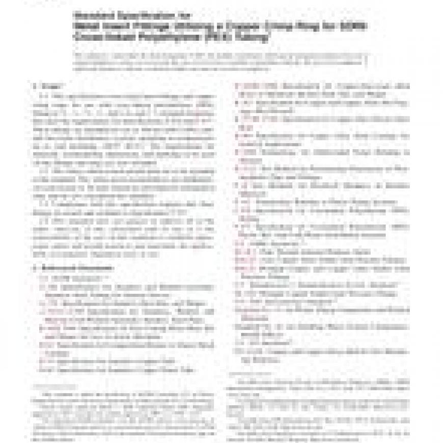 ASTM F1807-08 Standard Specification for Metal Insert Fittings Utilizing a Copper Crimp Ring for SDR9 Cross-linked Polyethylene (PEX) Tubing
