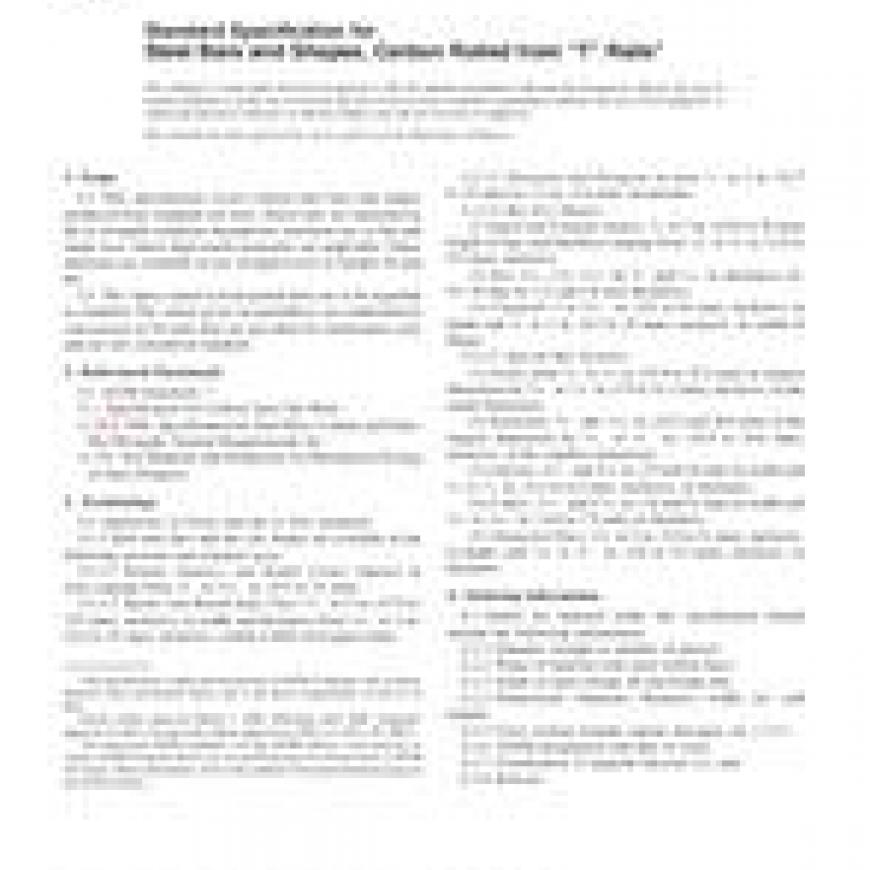 1.1 This specification covers carbon steel bars and shapes produced from standard rail steel. These bars are furnished in the as-wrought condition intended for structural use, or bar and shape uses, where high tensile properties are applicable. These materials are available in two strength levels as Grades 50 and 60.