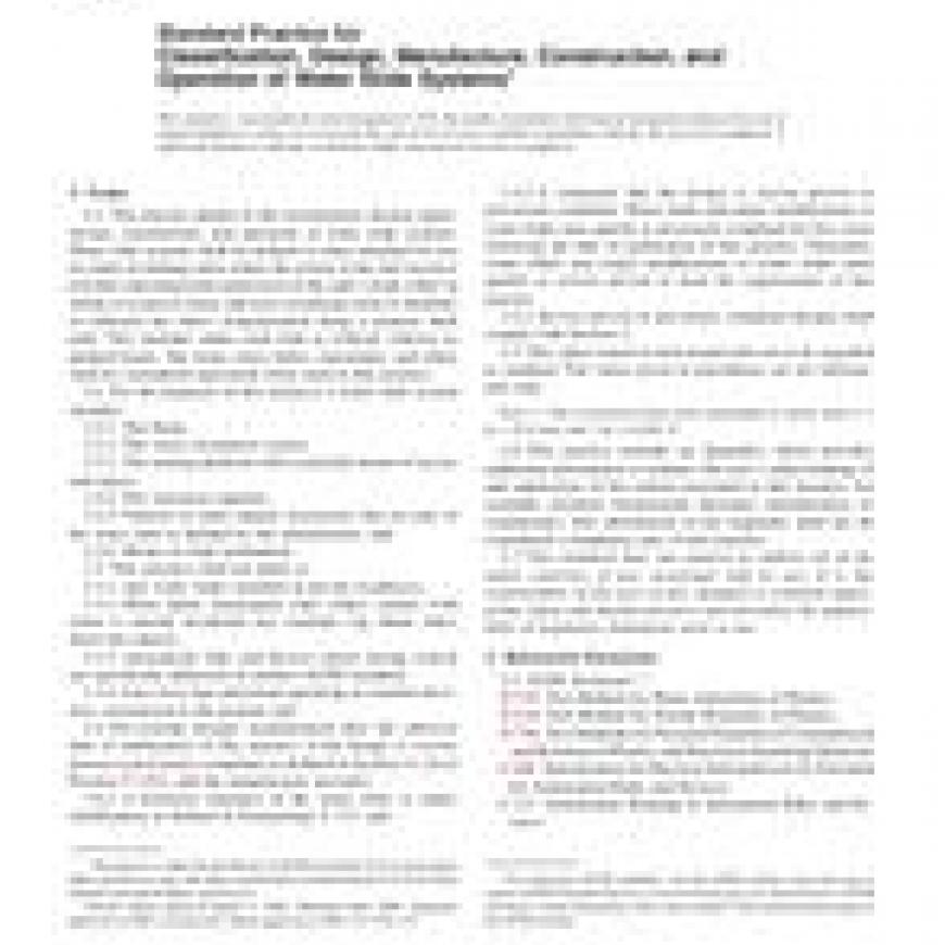 1.1 This practice applies to the classification, design, manufacture, construction, and operation of water slide systems. Water slide systems shall be defined as rides intended for use by riders in bathing attire where the action of the ride involves possible and purposeful immersion of the rider's body either in whole or in part in water, and uses circulating water to mobilize or lubricate the riders transportation along a purpose built path. This includes slides used with or without vehicles as defined below. The terms water slides, waterslides, and slides shall be considered equivalent when used in this practice.