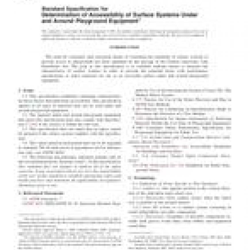 1.1 This specification establishes minimum characteristics for those factors that determine accessibility. This specification applies to all types of materials that can be used under and around playground equipment.