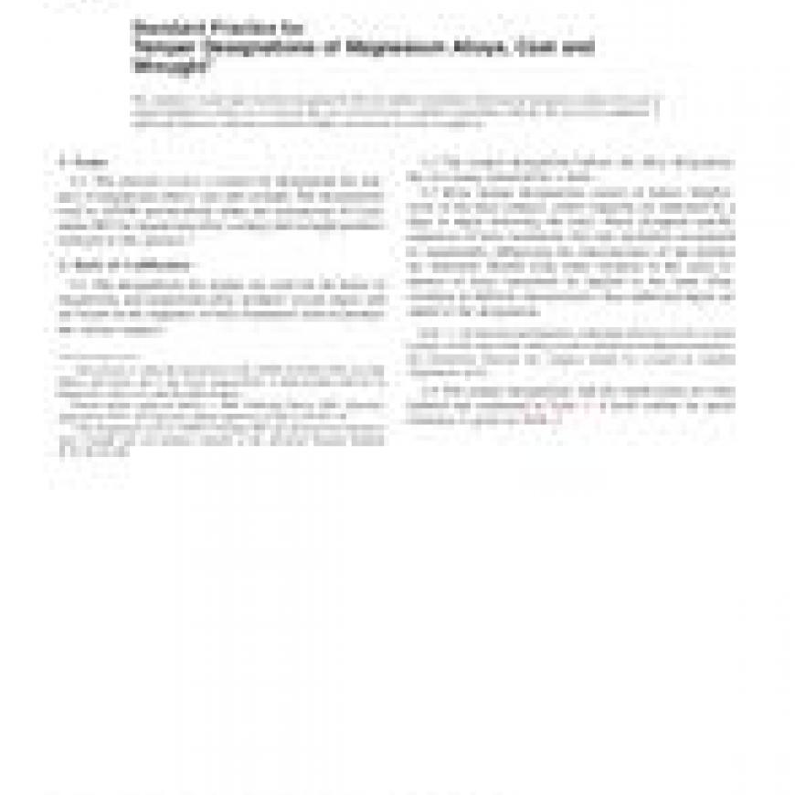 1.1 This practice covers a system for designating the tempers of magnesium alloys, cast and wrought. The designations used in ASTM specifications under the jurisdiction of Committee B07 for magnesium alloy castings and wrought products conform to this practice.