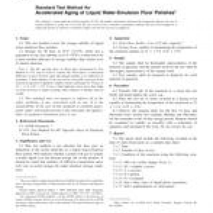 ASTM D1791-93(2008) Standard Test Method for Accelerated Aging of Liquid Water-Emulsion Floor Polishes