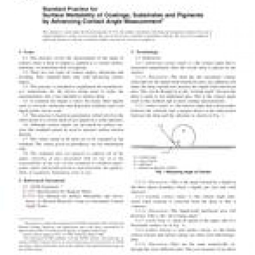 ASTM D7334-08 Standard Practice for Surface Wettability of Coatings, Substrates and Pigments by Advancing Contact Angle Measurement