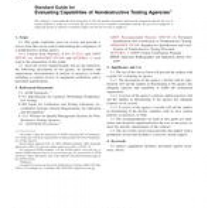 1.1 This guide establishes areas for review and provides a survey form that can be used in determining the competence of a nondestructive testing agency.