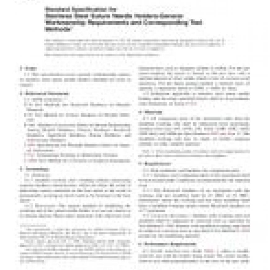 1.1 This specification covers general workmanship aspects of stainless steel suture needle holders intended for reuse in surgery.