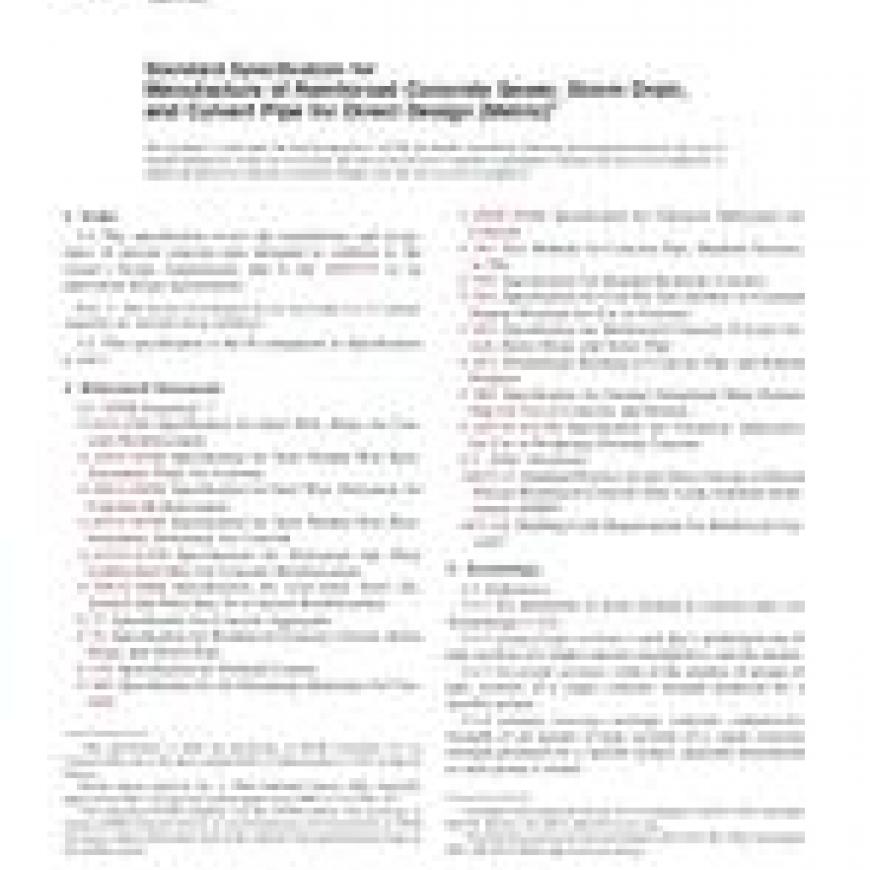 ASTM C1417M-08 Standard Specification for Manufacture of Reinforced Concrete Sewer, Storm Drain, and Culvert Pipe for Direct Design (Metric)