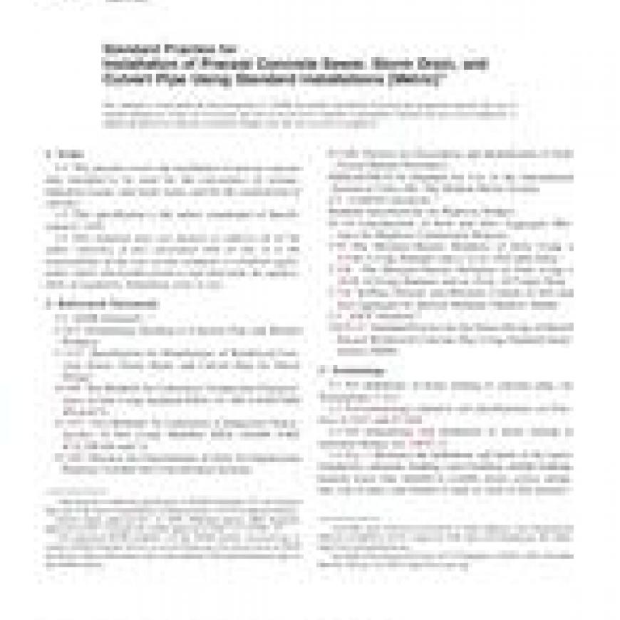 ASTM C1479M-07a Standard Practice for Installation of Precast Concrete Sewer, Storm Drain, and Culvert Pipe Using Standard Installations (Metric)
