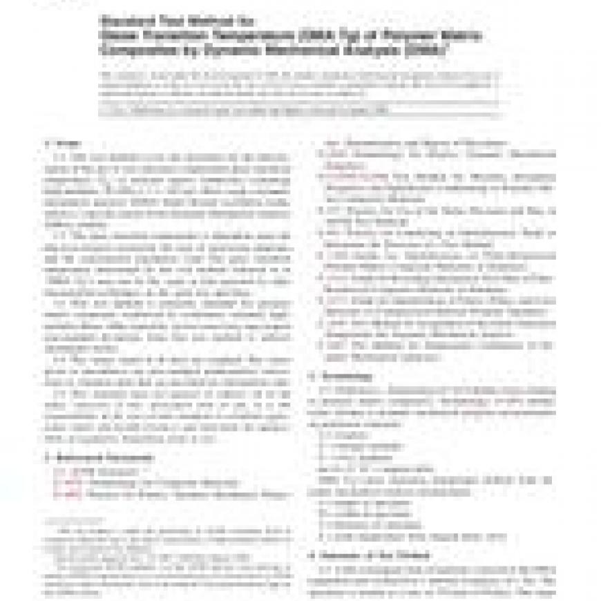ASTM D7028-07e1 Standard Test Method for Glass Transition Temperature (DMA Tg) of Polymer Matrix Composites by Dynamic Mechanical Analysis (DMA)