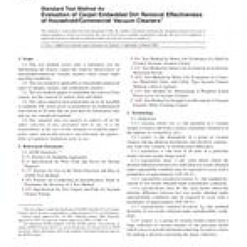 ASTM F608-07e1 Standard Test Method for Evaluation of Carpet Embedded Dirt Removal Effectiveness of Household/Commercial Vacuum Cleaners