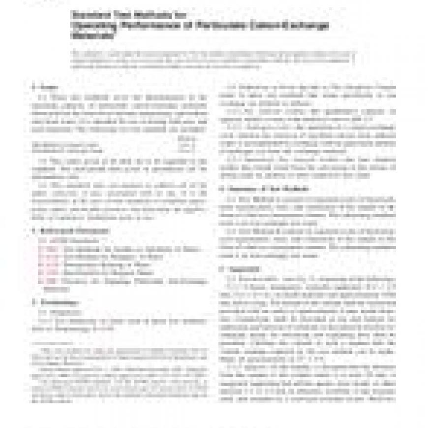 ASTM D1782-95(2007) Standard Test Methods for Operating Performance of Particulate Cation-Exchange Materials