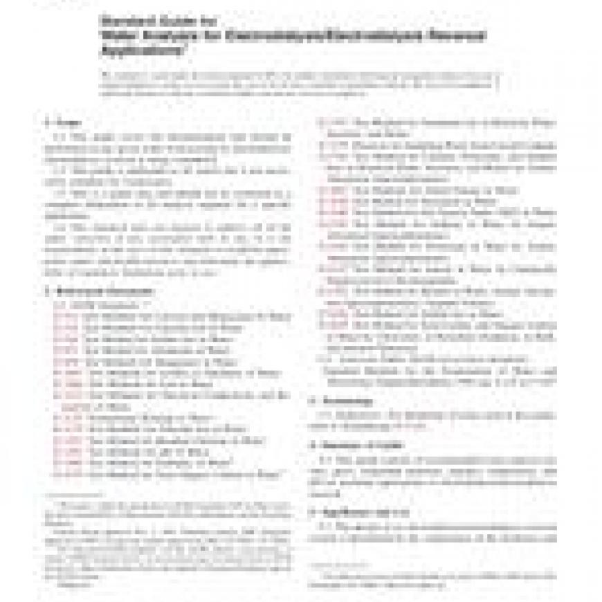 ASTM D5091-95(2007) Standard Guide for Water Analysis for Electrodialysis/Electrodialysis Reversal Applications