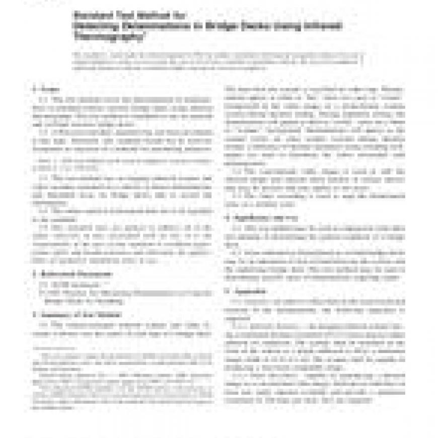 1.1 This test method covers the determination of delaminations in portland-cement concrete bridge decks using infrared thermography. This test method is intended for use on exposed and overlaid concrete bridge decks.
