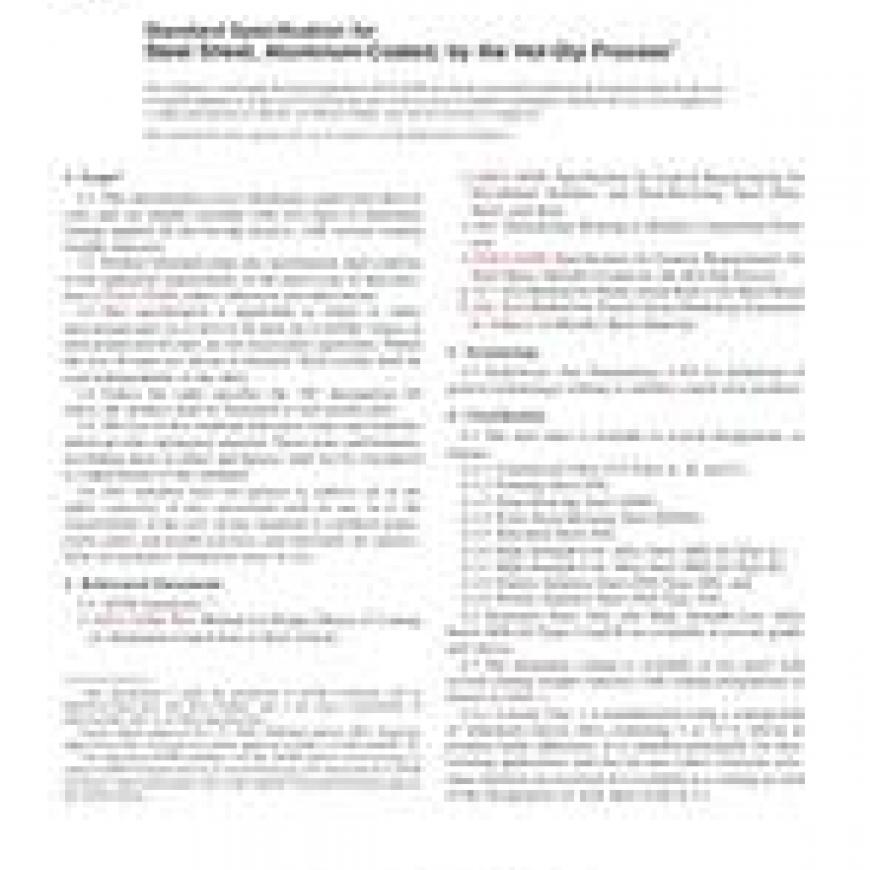 1.1 This specification covers aluminum-coated steel sheet in coils and cut lengths available with two types of aluminum coating applied by the hot-dip process, with several coating weights [masses].