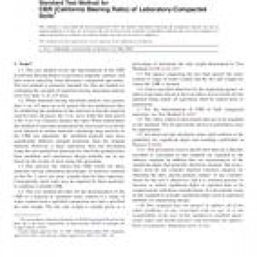 ASTM D1883-07e1 Standard Test Method for CBR (California Bearing Ratio) of Laboratory-Compacted Soils
