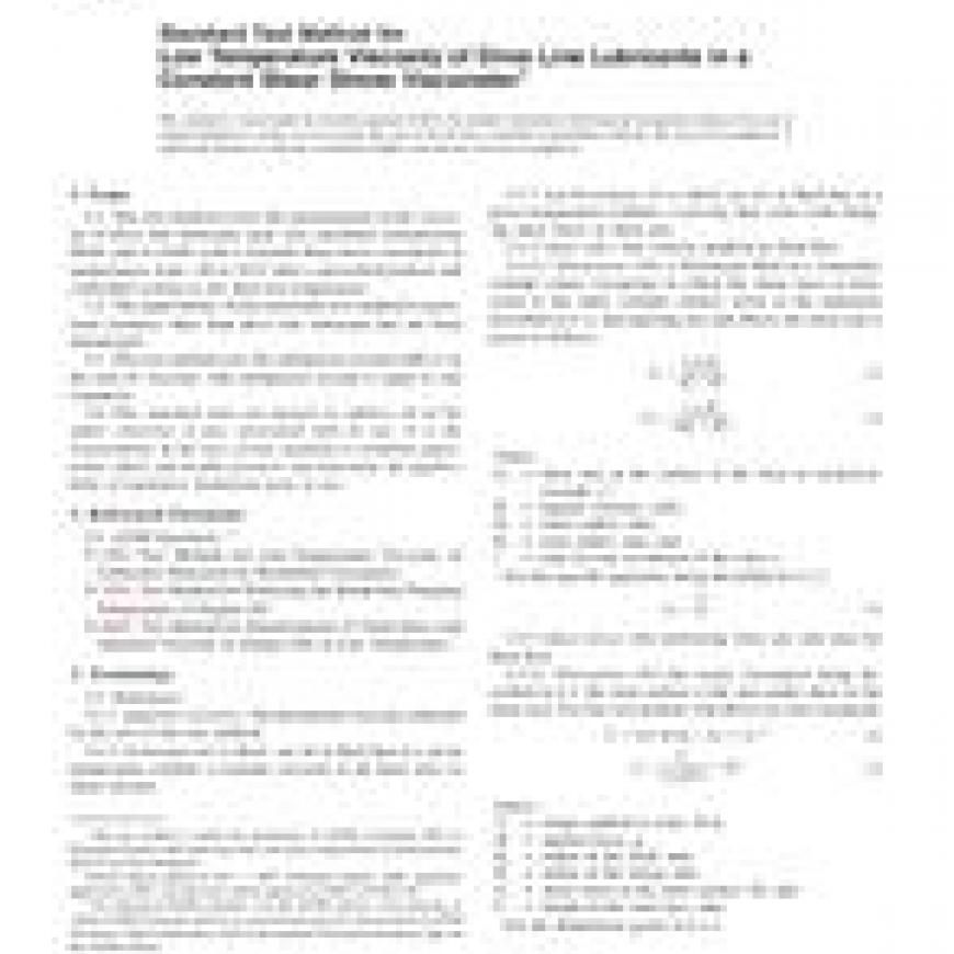 ASTM D6821-02(2007) Standard Test Method for Low Temperature Viscosity of Drive Line Lubricants in a Constant Shear Stress Viscometer