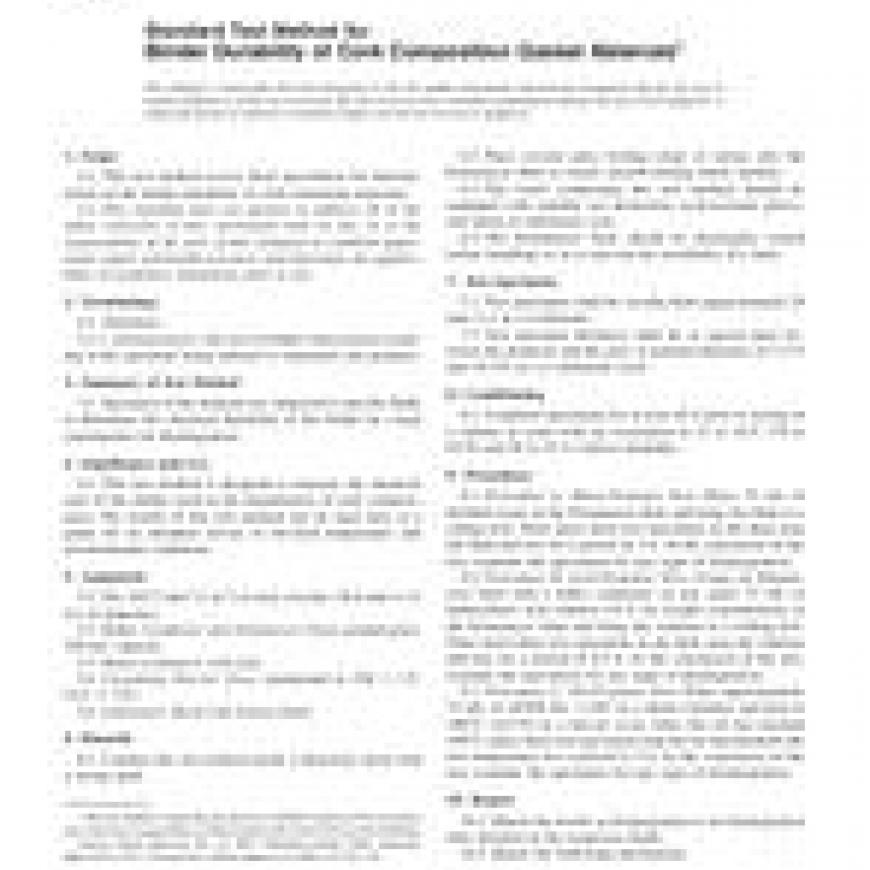 1.1 This test method covers three procedures for determination of the binder durability of cork-containing materials.