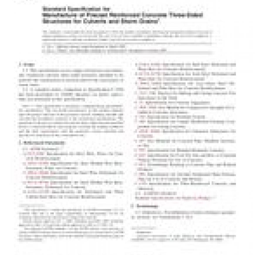 1.1 This specification covers single-cell precast conventionally reinforced concrete three-sided structures intended to be used for the construction of culverts and for the conveyance of storm water.