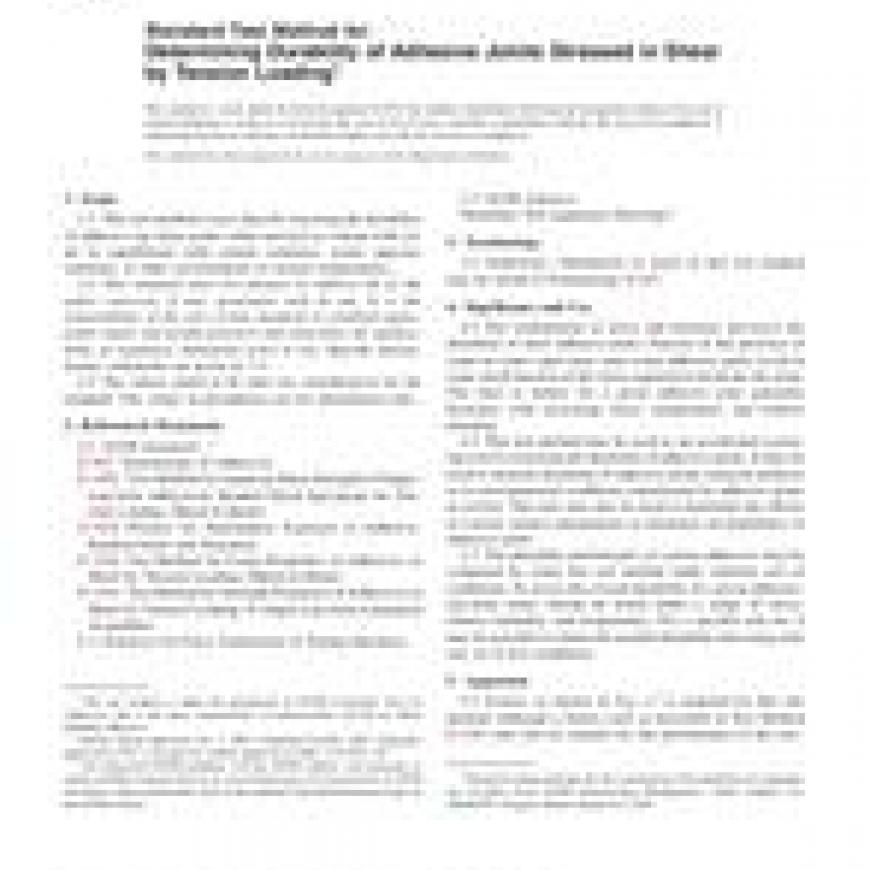 1.1 This test method covers data for assessing the durability of adhesive lap-shear joints while stressed in contact with air, air in equilibrium with certain solutions, water, aqueous solutions, or other environments at various temperatures.