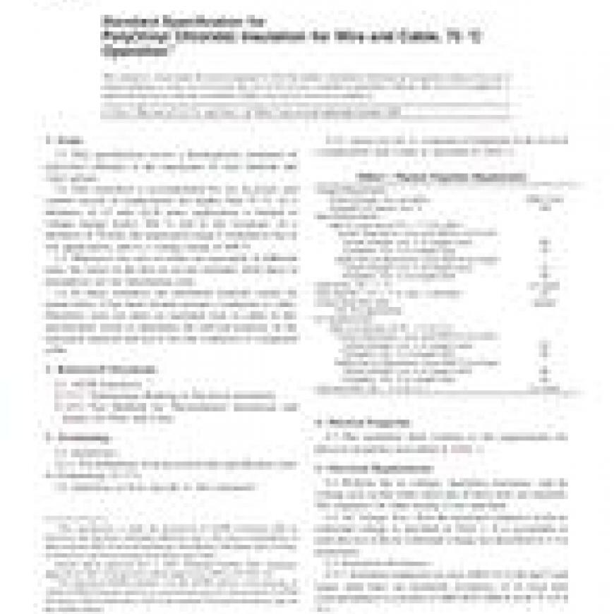 ASTM D2220-02(2007)e1 Standard Specification for Poly(Vinyl Chloride) Insulation for Wire and Cable, 75 degrees ;C Operation